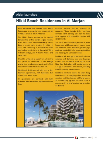 by Marjan, the master developer of freehold properties living experiences for families and visitors and further Al Marjan Island in Ras Al Khaimah. services, valet parking, bell boys to assist