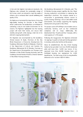 Emirati Neighbourhood initiative, providing Excellency Mohamed Khalifa Al Mubarak, Chairman Since its establishment, the Abu Dhabi Housing